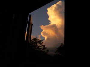 É assim que as nuvens brincam comigo no verão, querendo entrar pela janela como se fossem montanhas de algodão-doce…