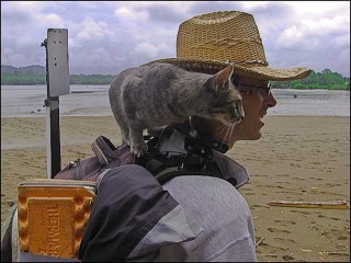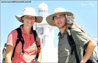 Ela era minúscula quando Laetitia e Guillaume a encontraram, numa estrada da Lousiania, já em sua jornada a pé de Miami, EU, para Ushuaia, no sul da Argentina. Adotada sem mais delongas, Kitty cresceu na estrada. O casal tem um site de viagens:  http://www.turnoftheworld.com .
