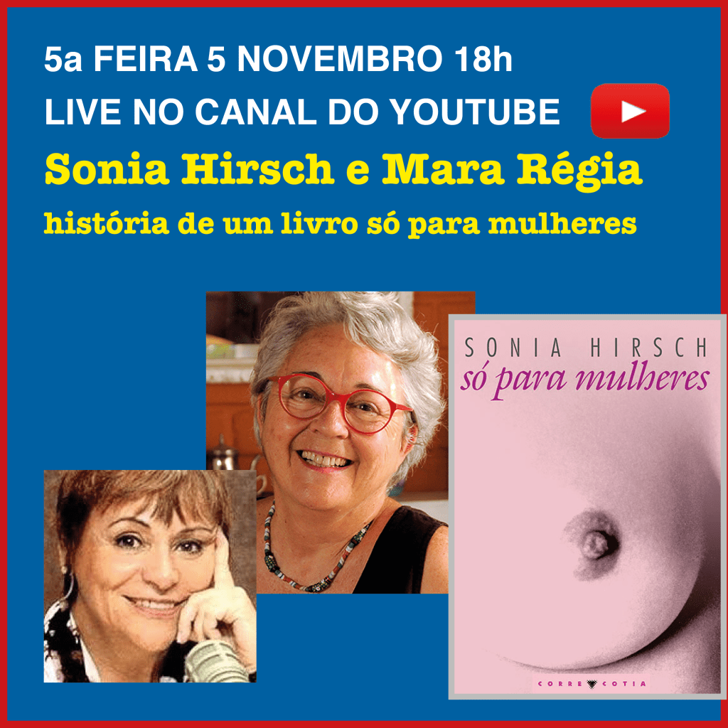 5a feira, 5 novembro, 18h, no canal sonia hirsch do youtube: https://www.youtube.com/watch?v=68TZ8wIr0ew